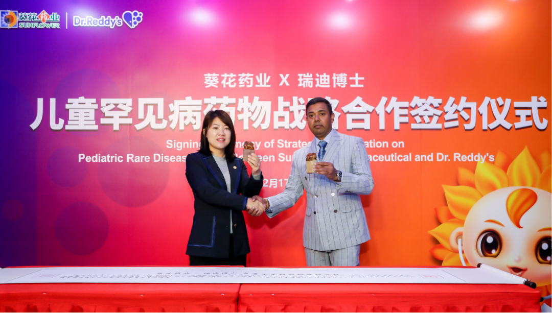 ? 12月17日,葵花藥業集團與印度跨國制藥企業印度瑞迪博士實驗室有限公司在京舉行了兒童罕見病用藥市場戰略推廣合作簽約儀式。葵花藥業集團總裁關一及瑞迪博士公司中國區總經理沙伊斯科瑪先生等高管,連同國內兒童罕見病專家、中國社會福利基金會等嘉賓,共同出席了簽約儀式。